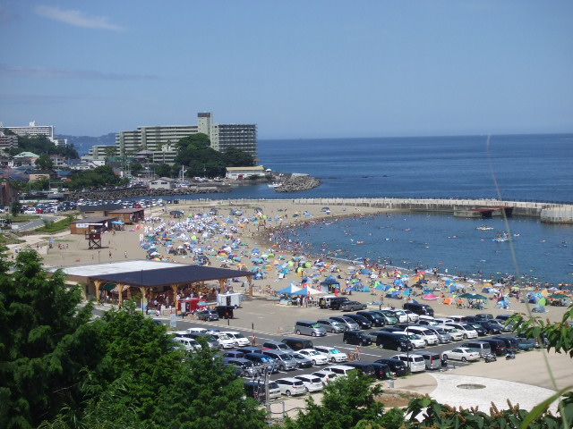 H26の海水浴シーズンが7月12日より始まりました。天候の関係で出足が鈍かったのですが、3連休になって人出が戻ってきました。駐車場も有料となり、朝8時から営業を開始しますが、それより前に並んだり、芝生ゾーンで待機している光景が見られます。