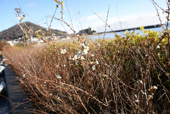ここ長浜海浜公園では、日だまりにユキヤナギが開花しました。海の近くということで、開花が早いのかもしれません。